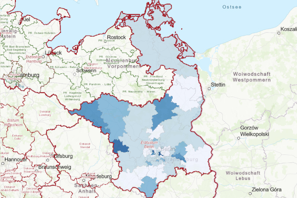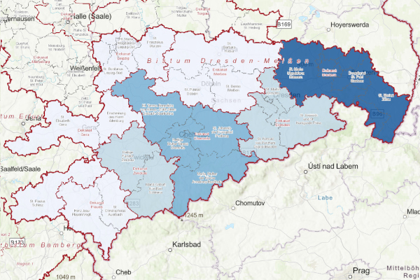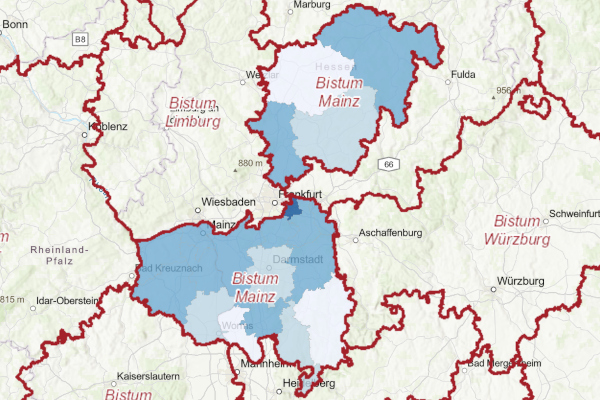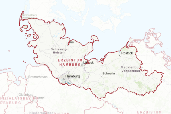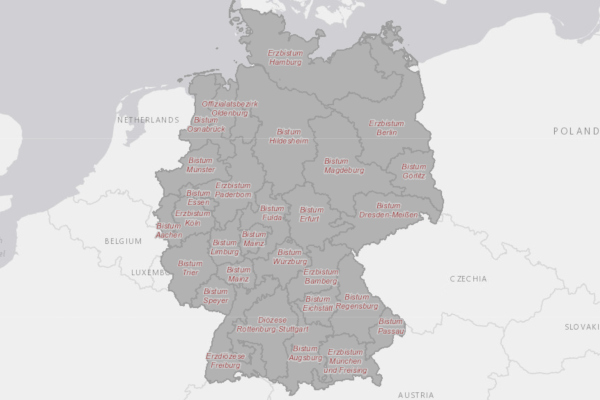 Mit diesem Dienst lassen sich die Grenzen der Bistümer als Webkarten abrufen und in andere GIS-Systeme integrieren sowie interaktiv darstellen.