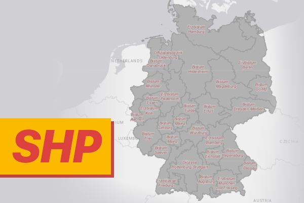 Die Bistumsflächen werden auch als Shapefile bereitgestellt, was die Nutzung in einer Vielzahl von GIS-Systemen ermöglicht.